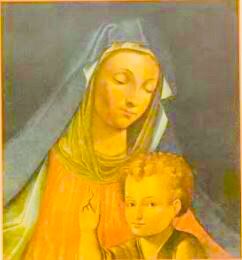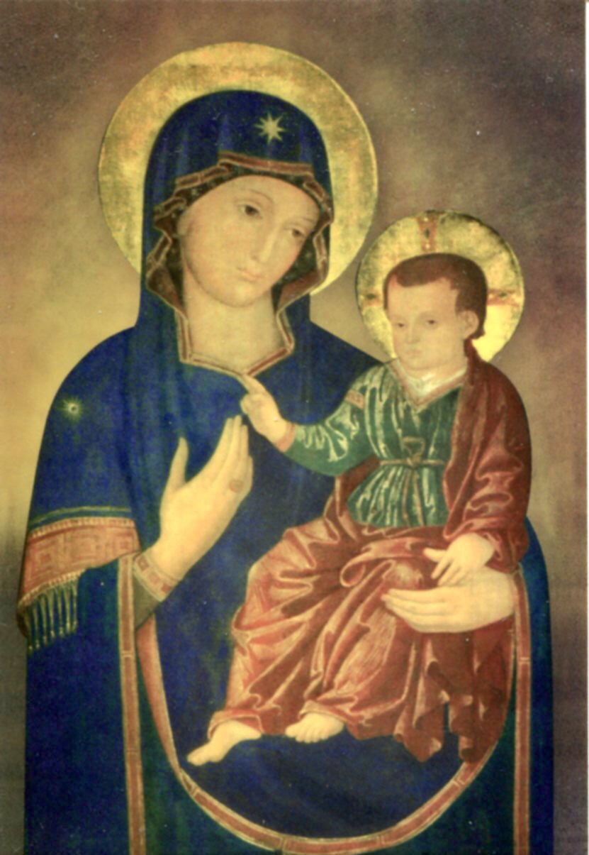 Postura di Maria. È quella classica delle “ Madonna che mostra la Via”: è frontale, regge il Bambino con il braccio sinistro. Non si vedono le mani, mentre nelle stampe della Consolata è presente la mano che indica Gesù/Via. Lo sguardo verso il Bambino
