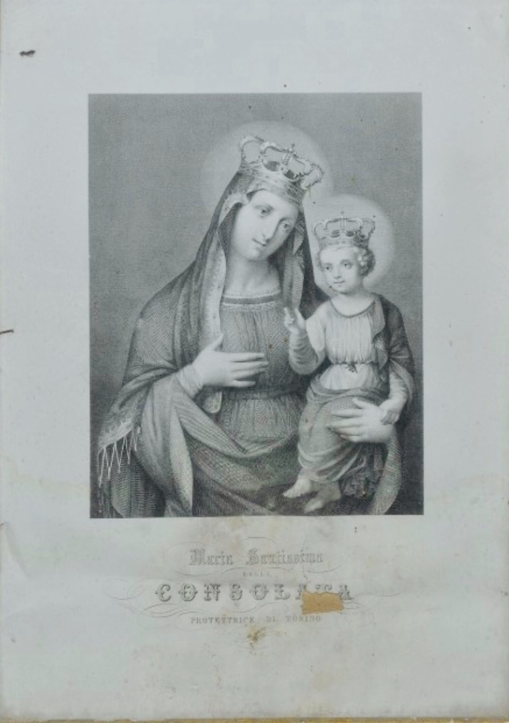 Maria Santissima Consolata. Stampa di acquaforte, Ambito piemontese sec.XIX. Collocazione: Diocesi di Pisa.