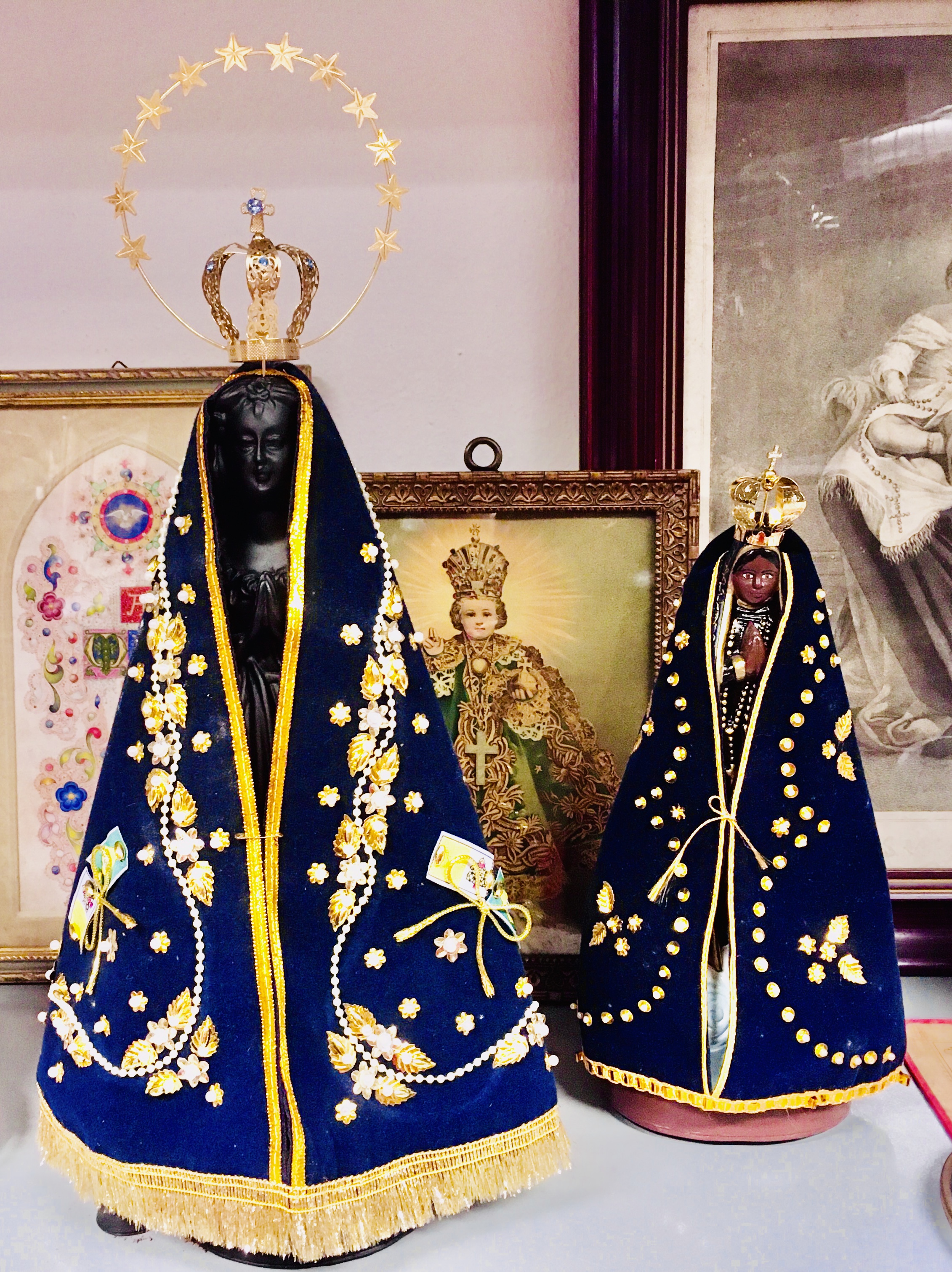 A Minima Devotio sono state donate anche queste due statuette un po’ “esotiche”. Si tratta di riproduzioni della celeberrima Nostra Signora della Concezione Aperecida, patrona del Brasile, venerata nell’omonimo santuario nei pressi di San Paolo, il più